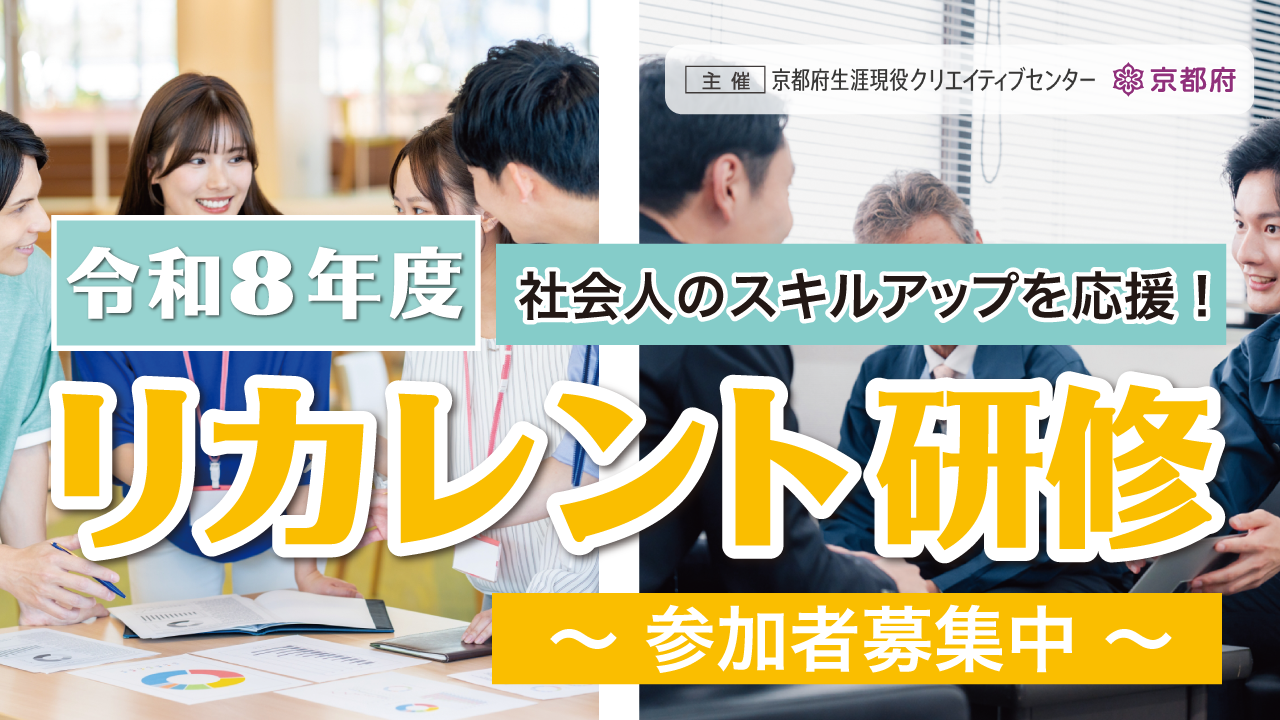 京都府生涯現役クリエイティブセンターでは、 「スキルアップしてもっと社内で輝きたい」 「新しいことにチャレンジしたい…